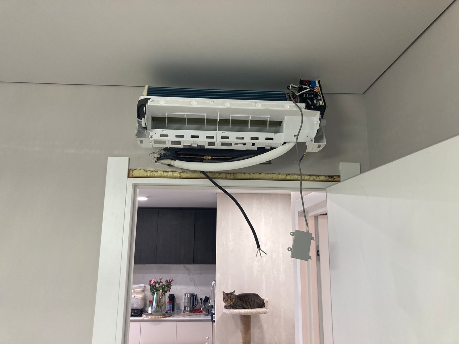 Установка внутреннего блока: Внутренний блок монтируется на стене, и к нему подключаются все необходимые коммуникации.