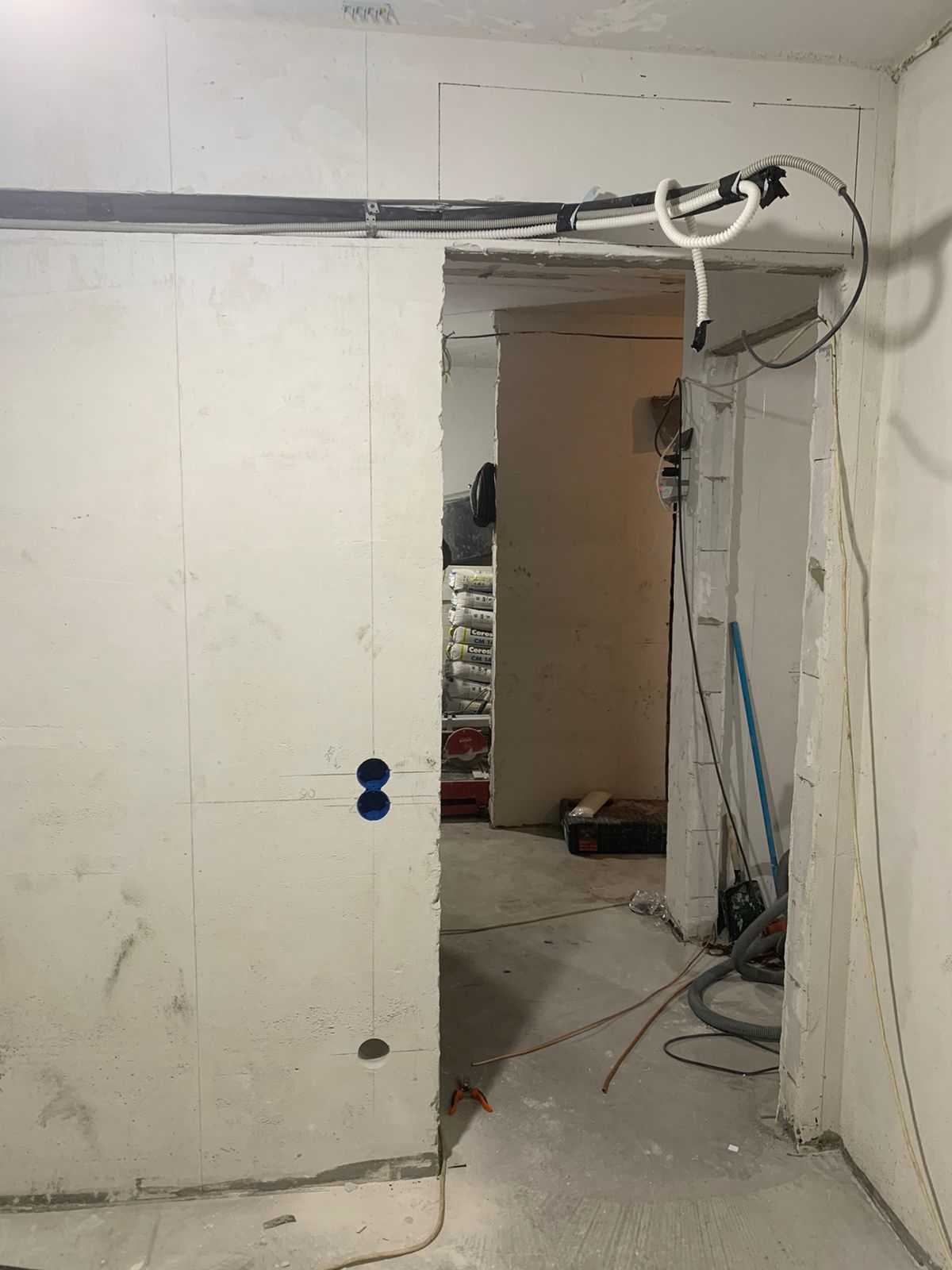Подготовка: На этом этапе производится разметка и подготовка мест для установки креплений. Также необходимо проделать отверстие в стене для прокладки коммуникаций (трубопроводы, электрические кабели и дренаж).