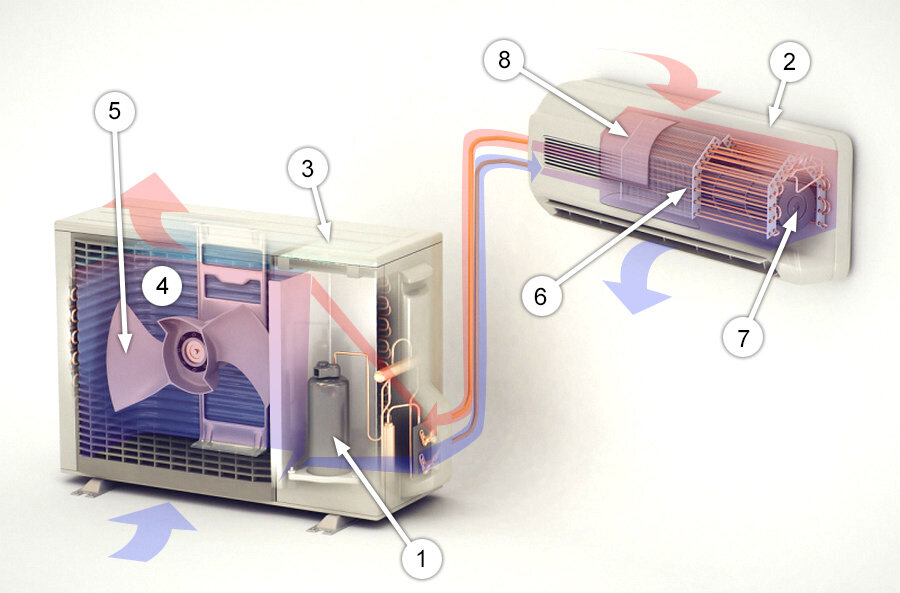 Сплит-система — это климатическое оборудование, состоящее из двух основных частей: внутреннего блока и наружного блока. Внутренний блок устанавливается в помещении и отвечает за охлаждение или обогрев воздуха, а наружный блок размещается на улице и обеспечивает отвод тепла или забирает его из окружающей среды.