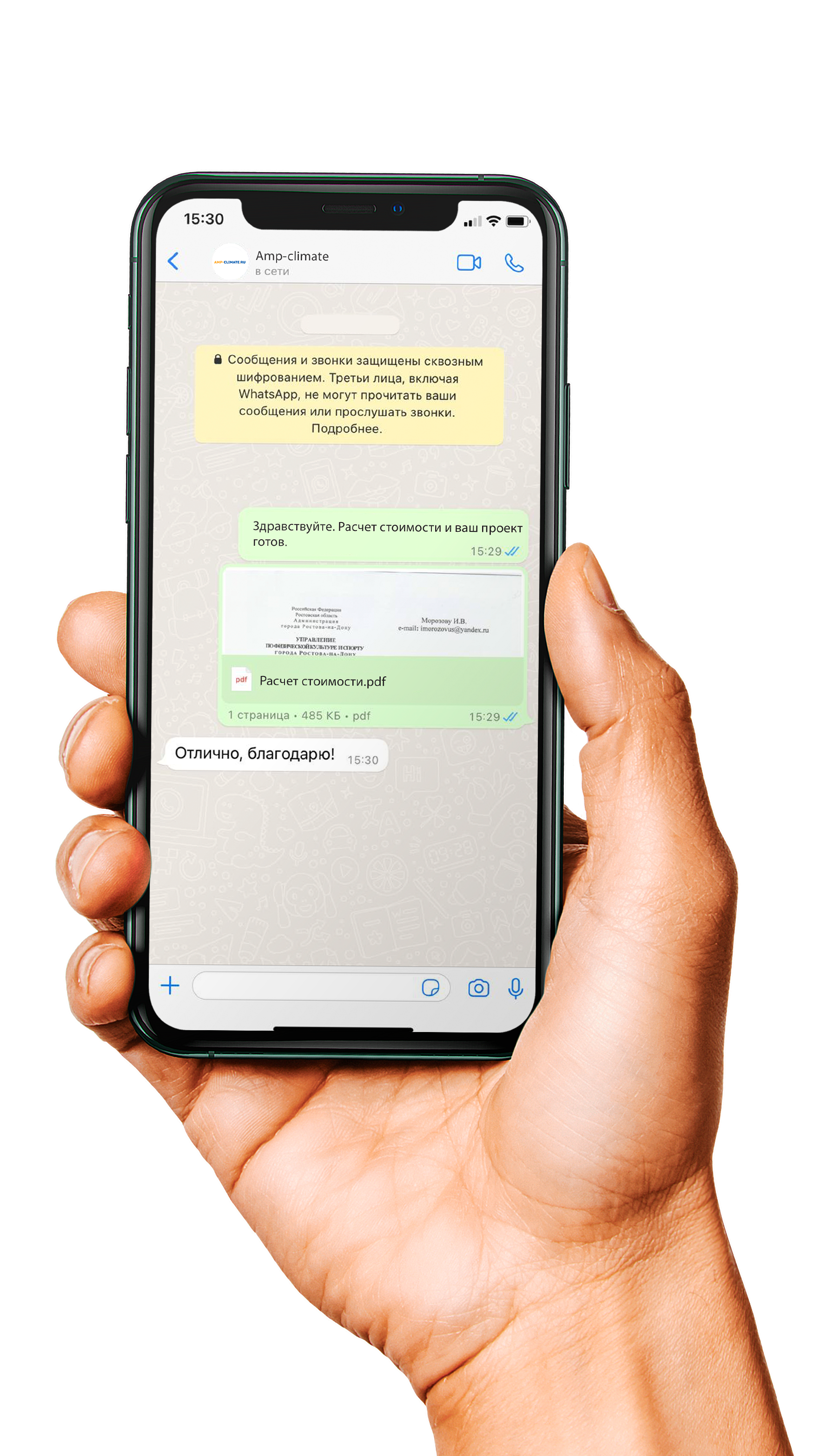 Можем начать с переписки в WhatsApp, это удобно и быстро